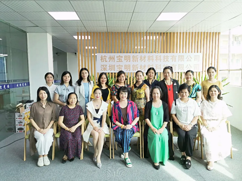 Sharing and growing together. In the scorching summer of July, the Huizhou Women Entrepreneurs Association organized a group of over 20 people to visit the enterprise of Zhang Ping, a member of the association - Shenzhen Baoming New Material Technology Co., Ltd. The person in charge of the enterprise gave a detailed introduction on the current development situation, product characteristics, product application fields, and market scale of the enterprise, and conducted in-depth exchanges and discussions with the association members on peer competition, future development, and other topics. General Manager Zhang Ping extended a warm welcome to the delegation from the Women Entrepreneurs Association and expressed her gratitude for the opportunity to showcase her company's unique style. Zhang Ping introduced the company's polymer technology and product demonstrations to everyone. She hoped to leverage the Huizhou Women Entrepreneurs Association to foster mutual support and growth, and to make the company better and better.