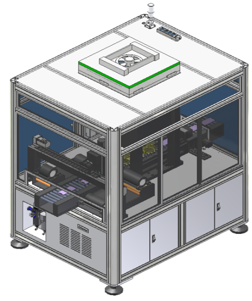 It is a standalone device specifically designed for the appearance inspection of mobile phone glass front and back covers. The device is compact, saving space, with edge-contacting rails and an integrated dust removal design, ensuring no damage or contamination to the glass. It is more efficient than fixture-based transmission.